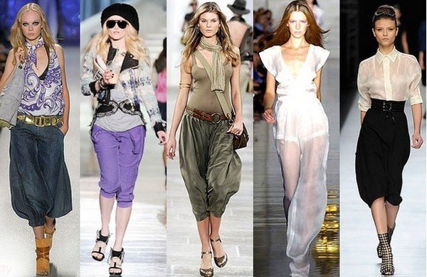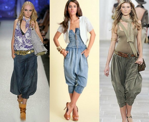 Pantalons - les parachutes ou les sarouels sans forme dans le style oriental, qui sont apparus dans les collections de créateurs de mode ces dernières années, sont toujours très populaires chez les femmes.